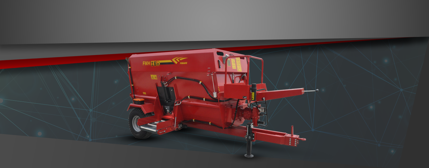Fimaks double auger horizontal mixer feeders have self hydraulic system, hydraulic discharge door, loading bucket and lateral conveyor as standard features. There are also optional features such as weighing system and 2. side hydraulic door and conveyor.
